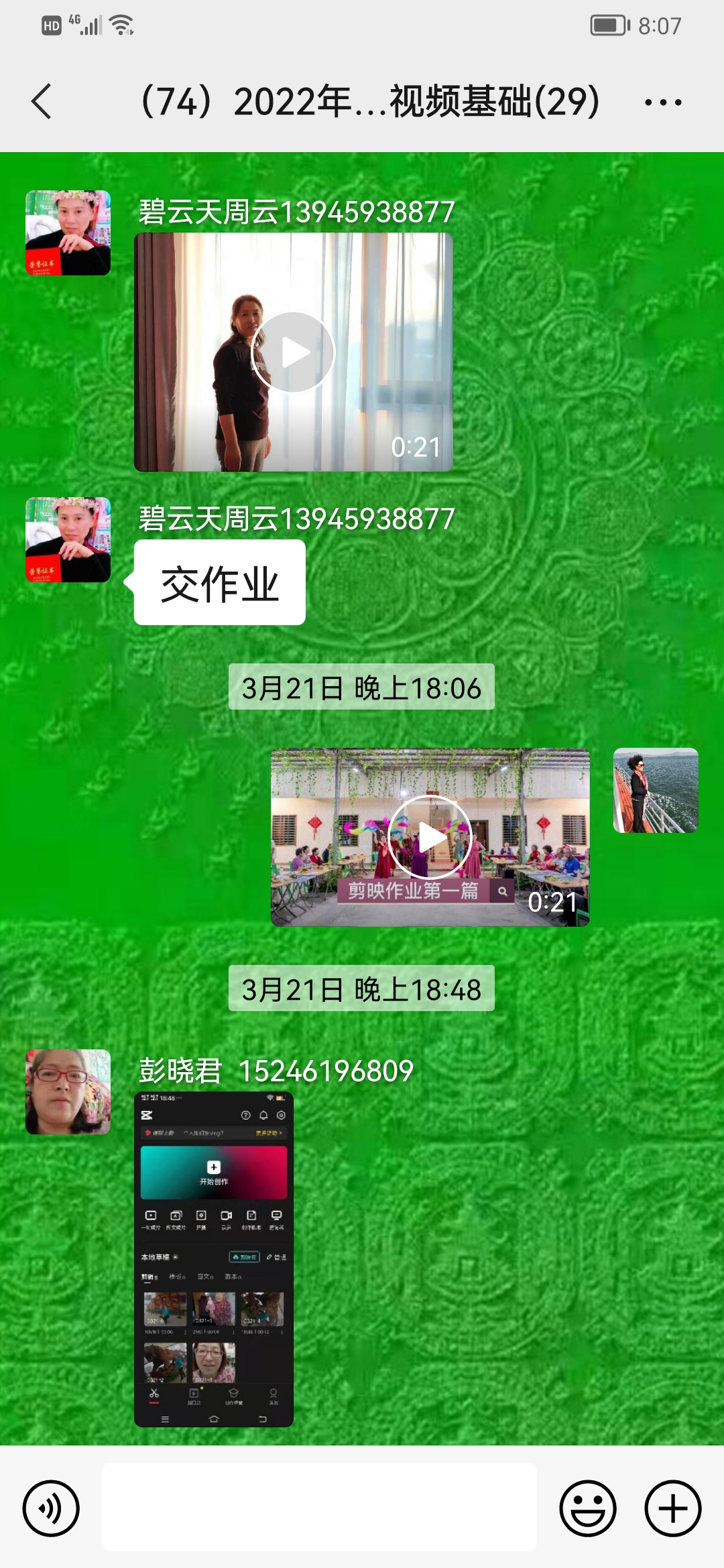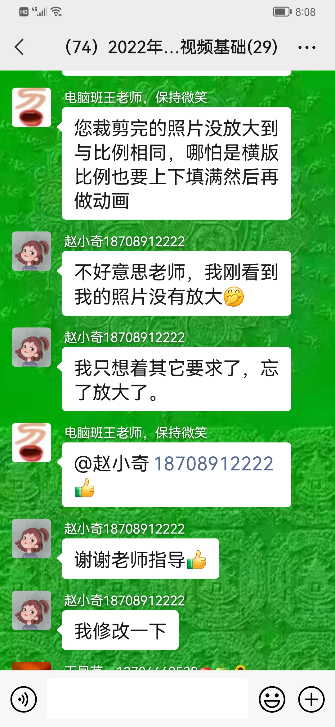 课下,王老师会留作业,要求每人必须把当天的授课内容做成实例作业,并发到班级群内,老师会点评每个人的作业,并且提出不足之处。